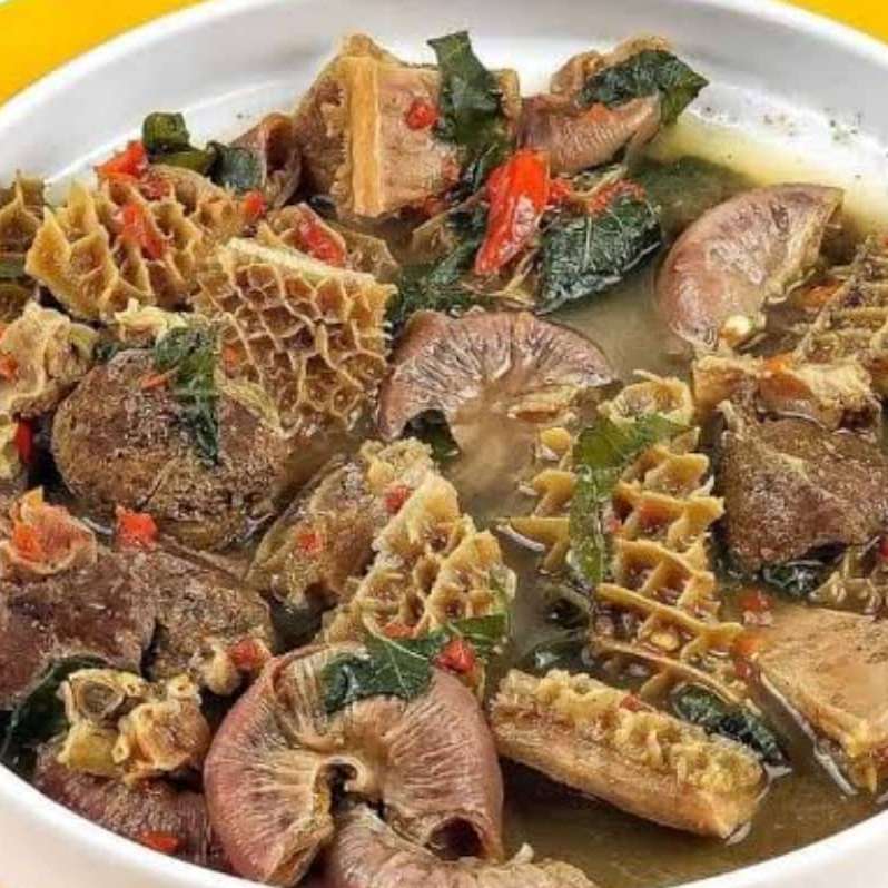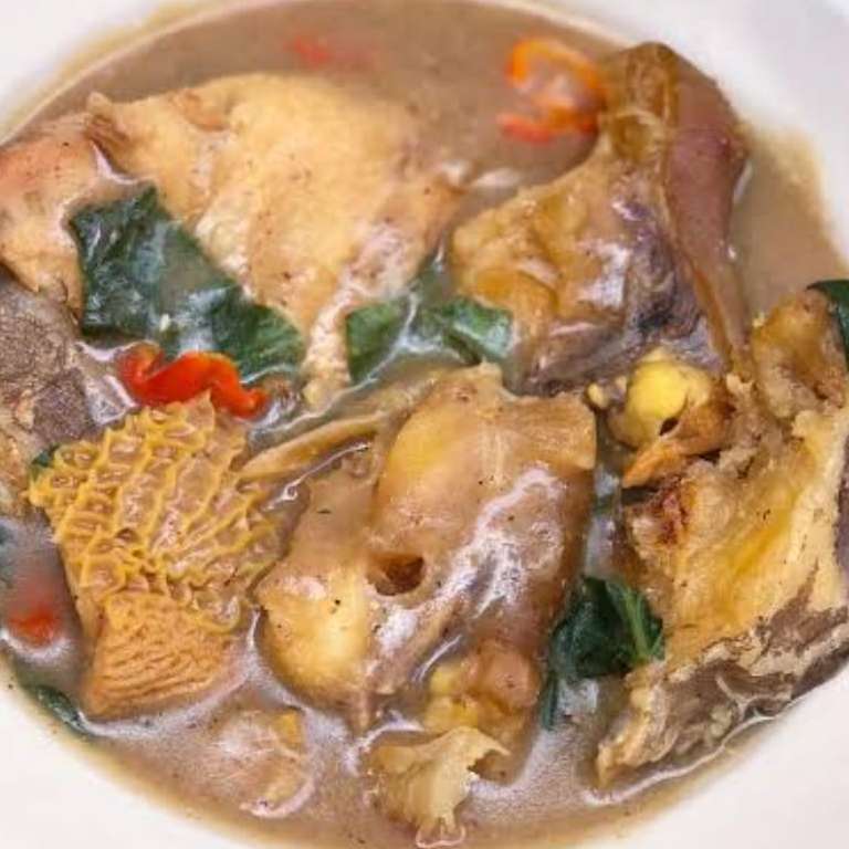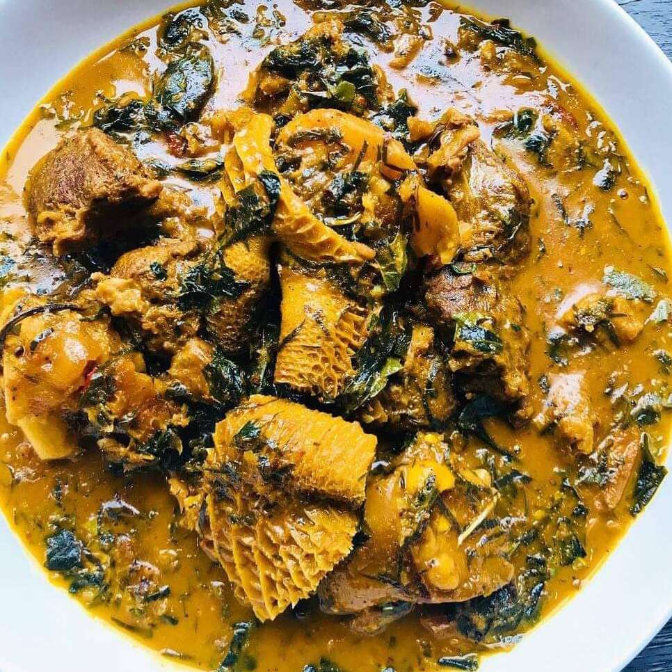 Native soup with Cow tail or Goat Meat and semo or Wheat
