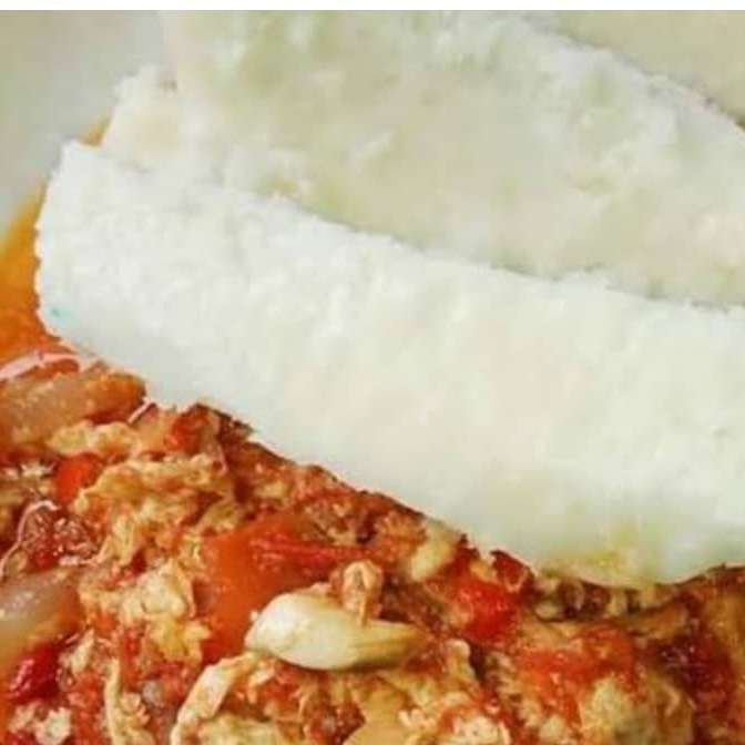 A plate of Afank with stockfish and semo or wheat