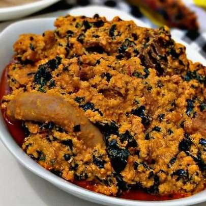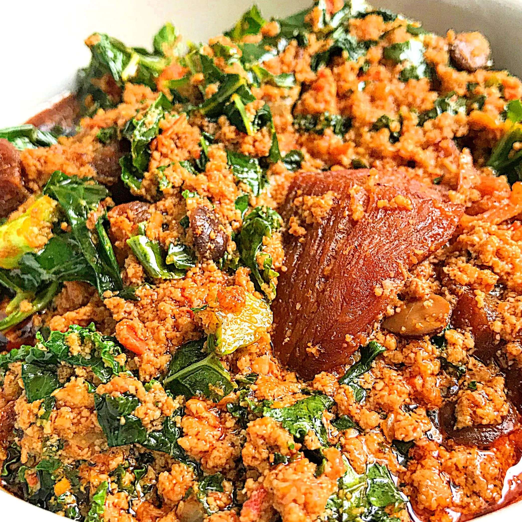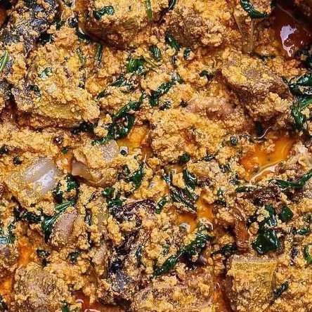 Egusi with Cow tail or Goat meat and Garri or fufu