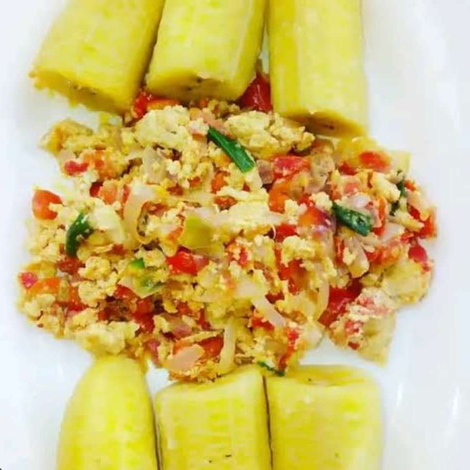 Egg source and fried plantain