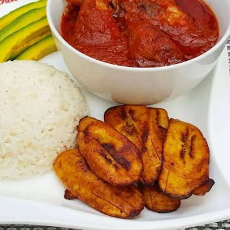 White rice, chicken and plantain